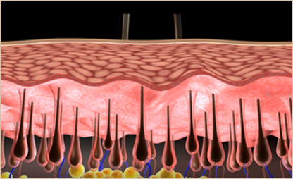 냉각 가스로시술 부위 피부를 보호하며, 모낭 모근부에 레이저빔 조사